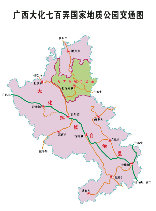 广西大化七百弄国家地质公园交通位置图