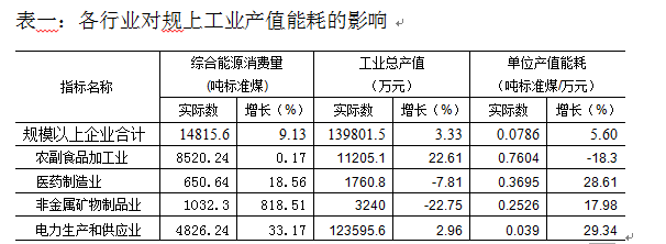 (一)农副食品加工业和电力生产和供应业是我县重点能耗行业,占比高,短期内难以改变