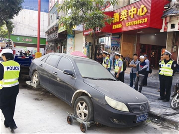 【县公安局交警大队】大化整治县城区交通违停乱象
