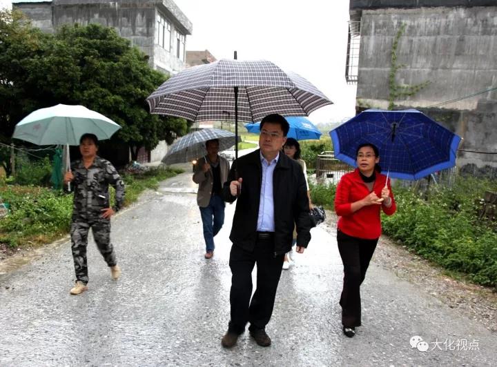 来到大化镇龙口村,杨龙文冒雨视察了龙口村的集镇环境,了解该村的人文和产业资源。龙口村属于大化镇辖区,处县城郊区,红水河现代农业(核心)示范区、富硒优质稻米生产基地就坐落在这里。从集市的街亭中可以看出,这里曾是个繁荣的山村集镇。龙口酸粉特色美食多年来以独特的美味享誉全县。