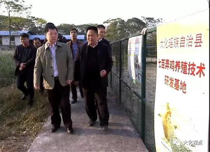 杨龙文指出,七百弄鸡于2017年1月10日获国家农业部授予农产品地理标志的大化地方畜禽品种。为挖掘做大这一地方特色优质畜禽品种,2016年以来,大化把七百弄鸡养殖作为扶贫开发的重点产业进行培育,在县委、县政府的引导推动下,七百弄鸡产业名声大振,品种优势日趋成熟,产业发展空间不断扩大。但是,由于产业发展起步较晚,产业体系建设仍需要不断完善,品牌推介需要持续加力,产业效益发挥亟待加强。