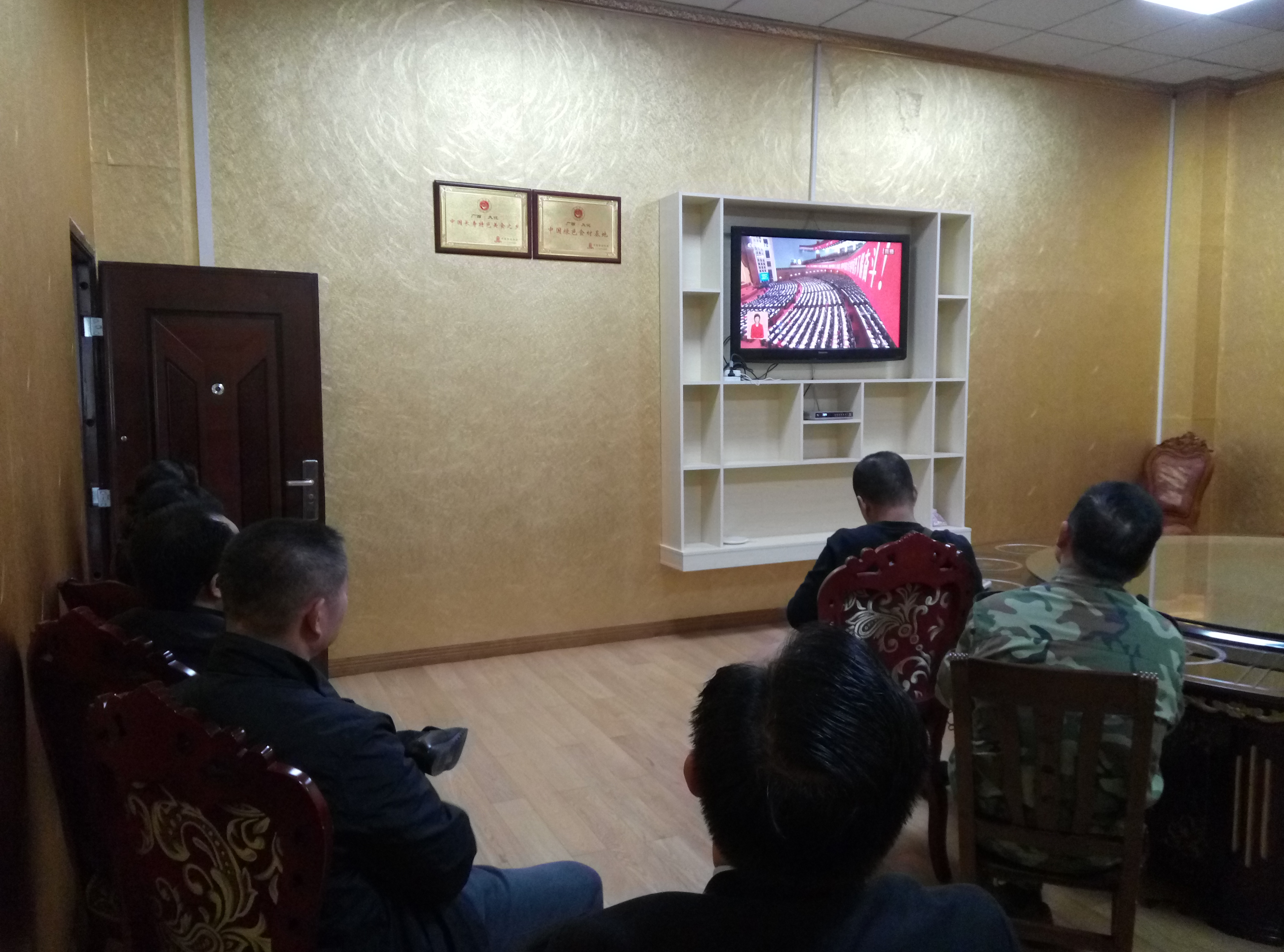 2017年10月18日,机关事务管理局全体干部职工在县府食堂贵宾室收听收看中国共产党第十九次全国代表大会。(图为收看会议现场)