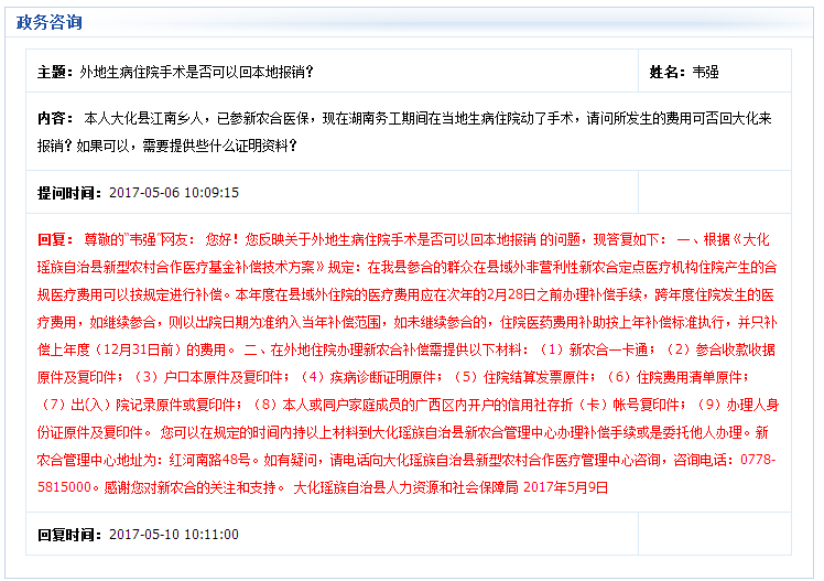 外地生病住院手术是否可以回本地报销