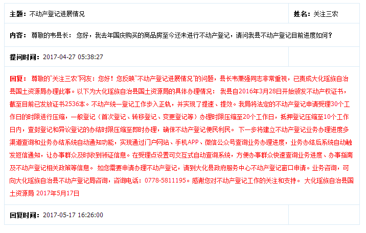 不动产登记进展情况