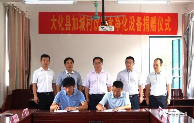 大化县委副书记杨胜涛,大化县委常委、副县长王军参加爱心捐赠活动,他们衷心感谢深圳福瑞莱环保科技股份有限公司对大化县饮用水安全工程的帮助与支持,并希望将来与贵公司多多进行交流和沟通,共同推进脱贫攻坚工作。(韦学)
