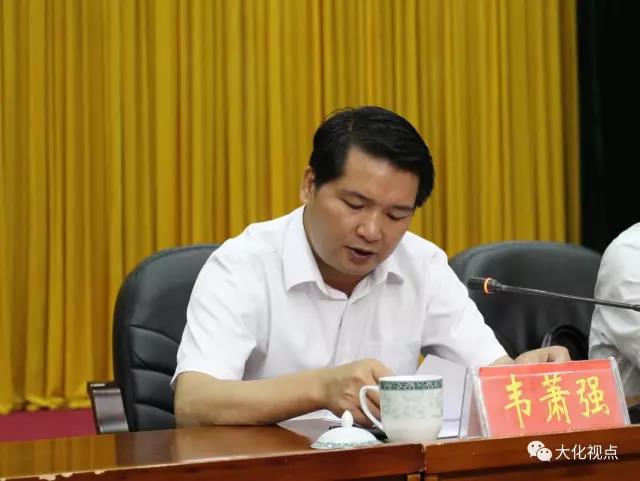 韦萧强要求,要加快推进三大产业提质发展,一是加快工业基础设施建设,二是加大技改投资工作力度,三是继续做大做强汁用丝瓜、七百弄鸡、大化红水河鱼等产业,四是加快推进全县电子商务产业发展;要加快推进重点项目建设,坚决完成固定资产投资任务,一是强化项目工作责任意识,二是着力推进重大项目建设工作,三是加强固定资产投资统计工作,四是加大推进工作的督查力度;要继续抓好脱贫攻坚工作,一是认真抓好20户以上自然屯通屯道路项目建设工作,二是确保第一批产业扶贫项目建设如期完成,三是大力抓好产业扶贫,四是大力抓好扶贫生态移民工作,五是大力抓好扶贫培训工作;要加快推进招商引资工作,一是深化区域招商,巩固和扩大招商成果,二是推进重点项目招商,三是加强项目策划包装,夯实招商引资基础。