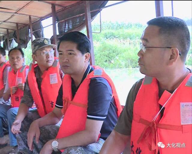 6月30日,大化瑶族自治县县长韦萧强(右二)在板升乡视察灾情。蓝华争 摄