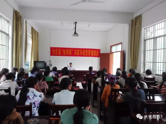 8月17日上午,大化瑶族自治县妇联到七百弄乡弄腾村公共服务中心组织举办“金绣球”农家乐示范点第二期培训班——农家乐经营管理培训。70多名农村妇女代表和妇女骨干参与培训,培训邀请本地妇女能人大化布努人家负责人蓝芳灵同志讲课。