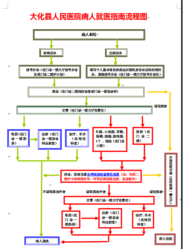 大化县人民医院病人就医指南流程图