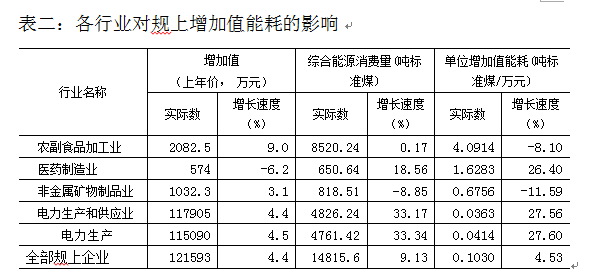 (一)农副食品加工业和电力生产和供应业是我县重点能耗行业,占比高,短期内难以改变