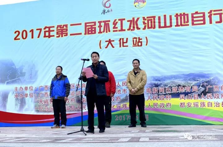 12月12日,第二届环红水河山地自行车赛大化段比赛隆重举行,来自全国各地共100名自行车骑行选手参加比赛。