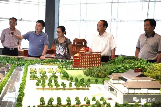 黄光华(右二)在杨龙文(左二)杨胜涛(右一)陪同下观看民族生态新城沙盘