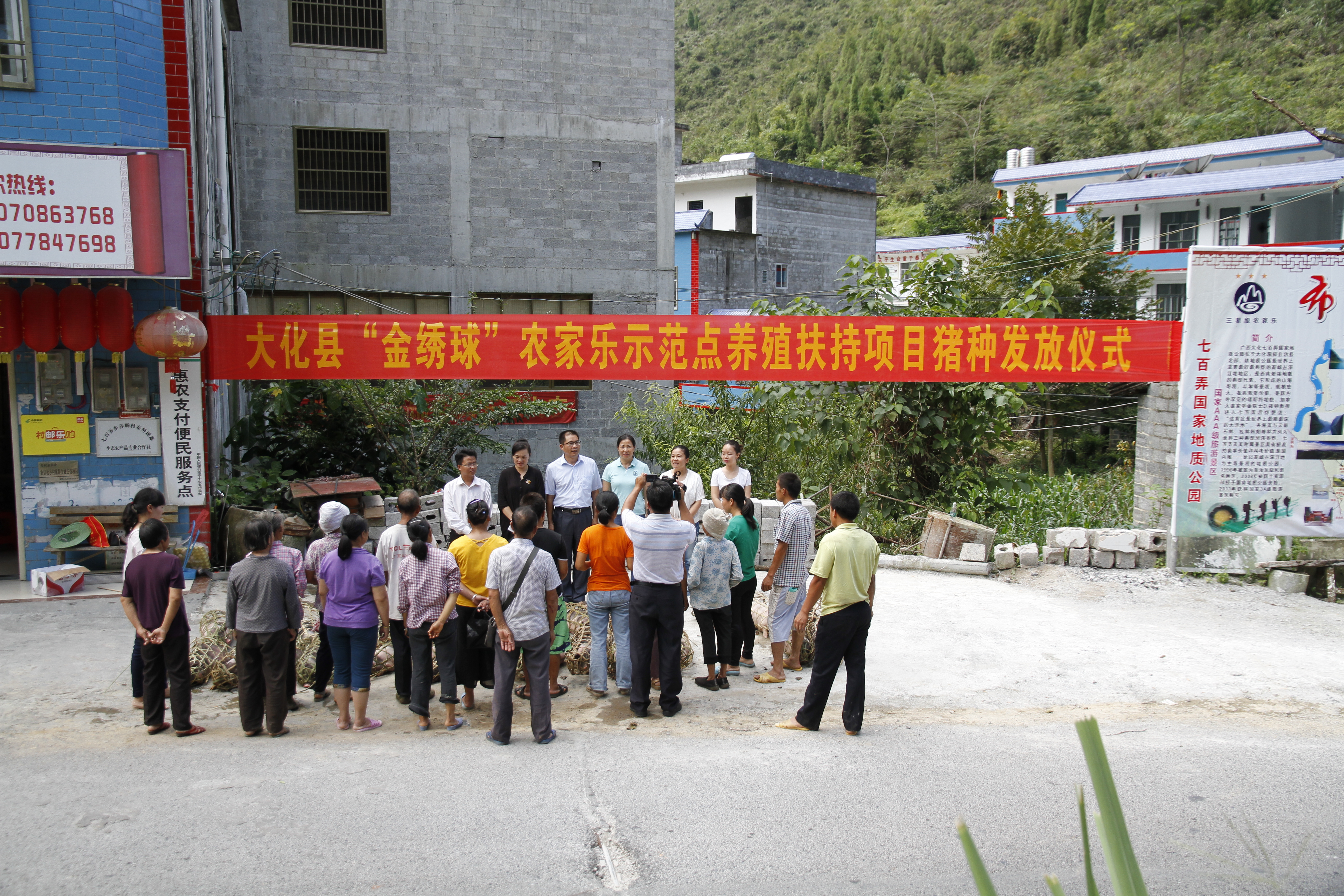 2.创建“金绣球”农家乐示范点。七百弄乡弄腾村桥圩屯布努人家被自治区妇联、旅发委、扶贫办认定为全区“金绣球”农家乐示范点。2017年5月,大化县党委、政府落实专项配套资金10万元,推动“金绣球”农家乐示范点的创建。该“金绣球”农家乐示范点通过吸纳就业、订单收购土特产、资金入股分红及委托经营等方式带动帮扶10户建档立卡贫困户发展生产,引领农村妇女创业就业、脱贫致富,辐射带动了当地农家乐发展,打造乡村旅游发展新品牌及贫困妇女脱贫致富新亮点。目前,县妇联已给示范点及示范点带动扶持的建档立卡贫困户韦海文等10户每户发放七百弄黑土猪种5头价值25159元;给建档立卡贫困户韦田等5户每户发放七百弄鸡苗200羽,价值15000元。