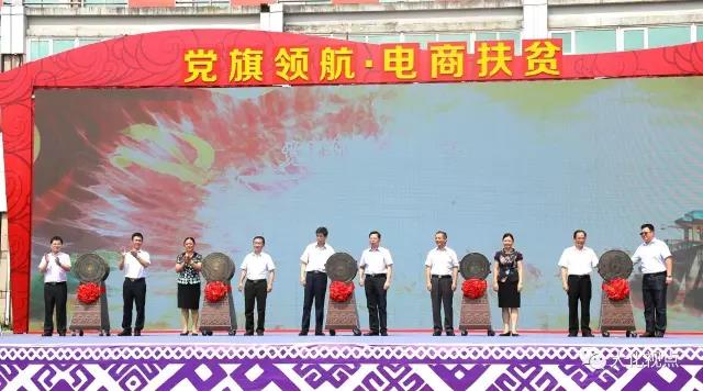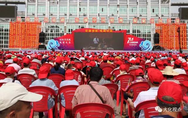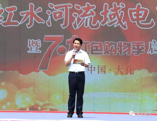 6月23日,广西“党旗领航·电商扶贫”红水河流域电商大集暨“七一红色购物季”在“长寿门户,美食之乡”大化瑶族自治县启动。全国政协委员、民建广西区委主任委员钱学明,自治区党委组织部部务会成员、两新组织党工委专职副书记刘水玉,河池市委常委、组织部部长马南萍,大化瑶族自治县委员会书记杨龙文等领导嘉宾共同启动2017年广西“党旗领航·电商扶贫”七一红色购物季。